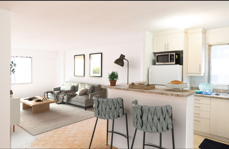 One Month Free!Imagine having an amazing view of the city skyline from the comfort of your bedroom! FOR RENT | À LOUER Studio, 1, 2, 3, 4 Bedroom Apartment at Place du Fort, Montreal *Starting from $950$ / month* Our apartments are equipped with full sized kitchens, stove, fridge and AC. The building has interior pool, study rooms with WI-FI and laundry room.ALL UTILITIES INCLUDED! ***Limited time offer on rental incentives. Contact us at (514) 613 - 6502 or placedufort@creccal.com for more information